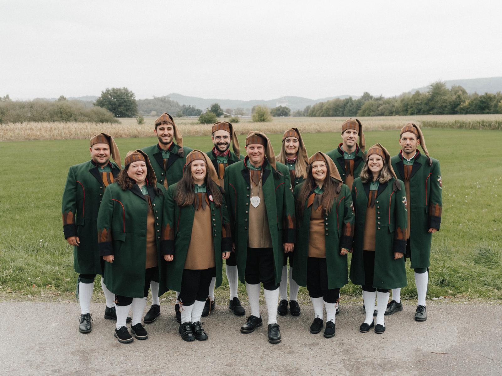 (vordere Reihe): Lisa Schäuble, Susanne Nagelbach, Tom Rapp (Zunftvogt), Sina Himmelsbach (Stabhalterin), Teresa Werner
